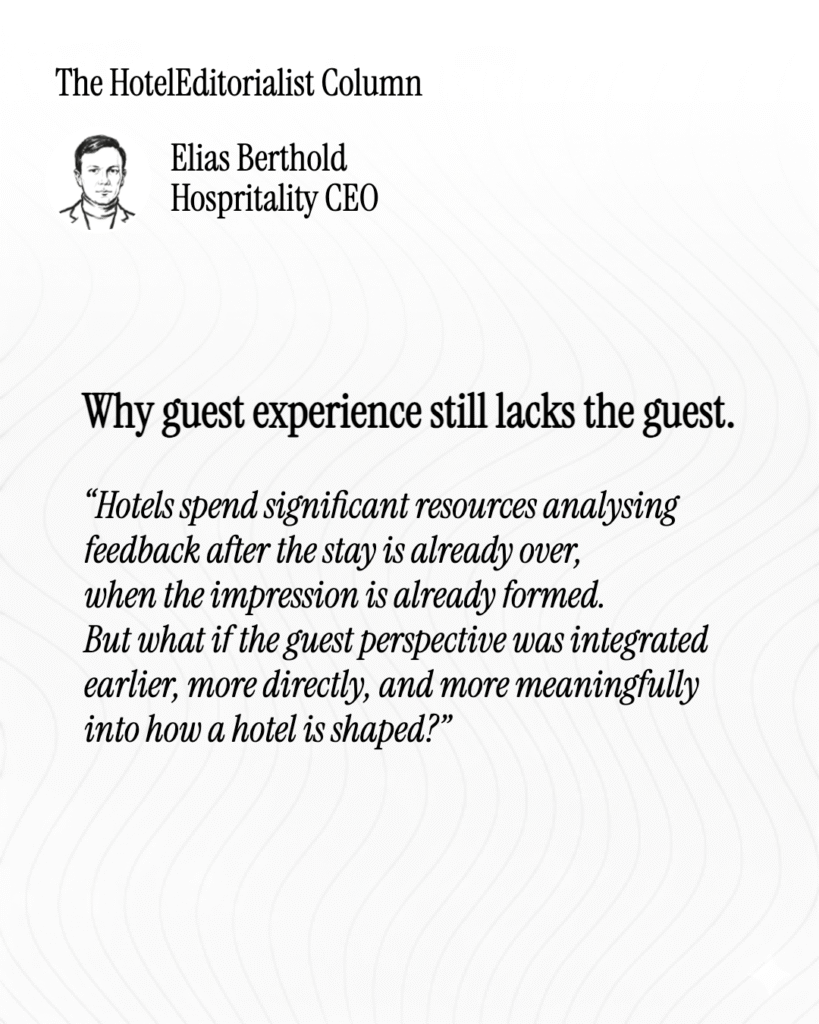 Not the guest as a post-stay survey. Not the guest as a review score. But the guest as an active contributor to how a hotel is shaped, experienced and remembered.